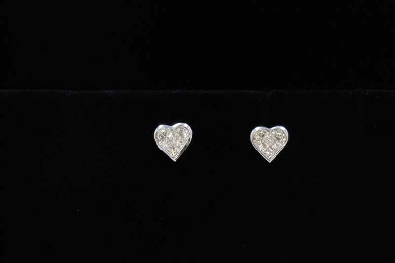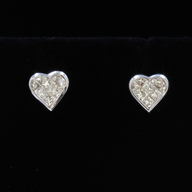 18K White Gold And Diamond Earring Princess Shape Diamond(invisible Setting)-1.31ct Weight-3.22 Grams/Diamond Color: E-F /Diamond Clarity: VVS/Style#: LQ529E/Item No : 27207