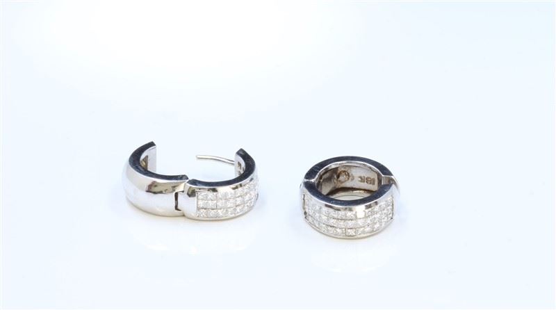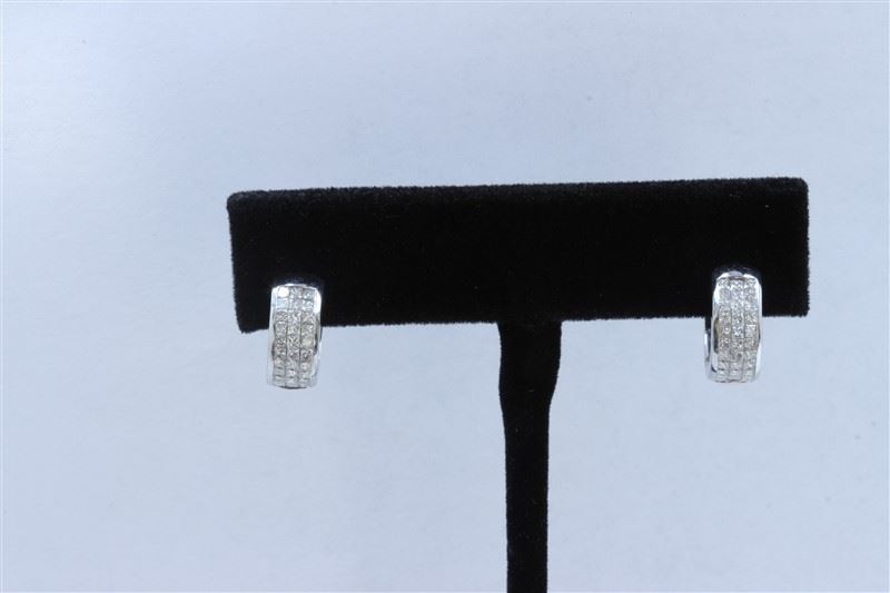 18K White Gold And Diamond Earring Princess Shape Diamond(invisible Setting)-1.39ct Weight-8.94 Grams/Diamond Color: E-F /Diamond Clarity: VVS/Style#: 382E/Item No : 26444