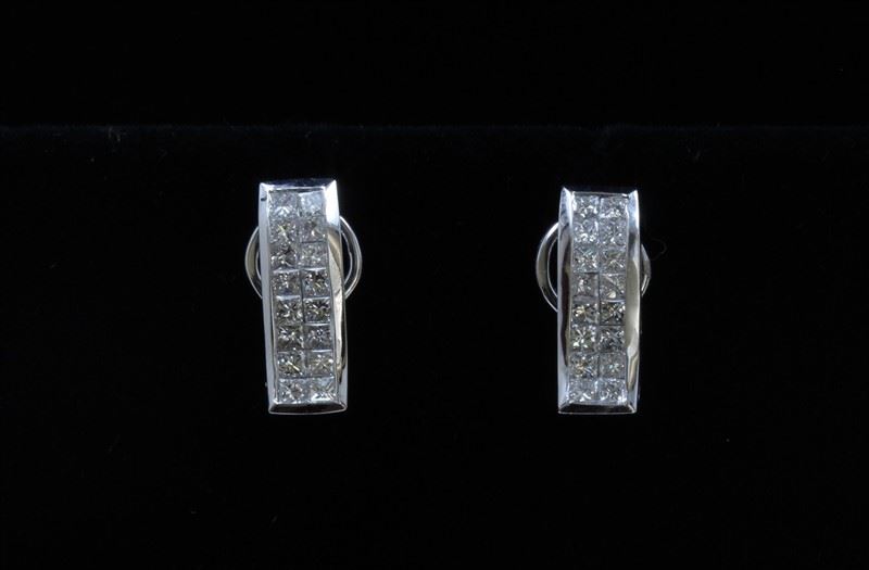 18K White Gold And Diamond Earring Princess Shape Diamond(invisible Setting)- 2.04ct Weight-6.88 Grams/Diamond Color: E-F /Diamond Clarity: VVS/Style#: LQ474E/Item No : 23332