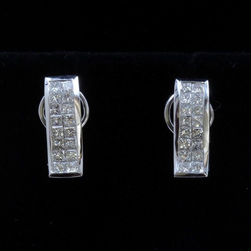 18K White Gold And Diamond Earring Princess Shape Diamond(invisible Setting)- 2.04ct Weight-6.88 Grams/Diamond Color: E-F /Diamond Clarity: VVS/Style#: LQ474E/Item No : 23332
