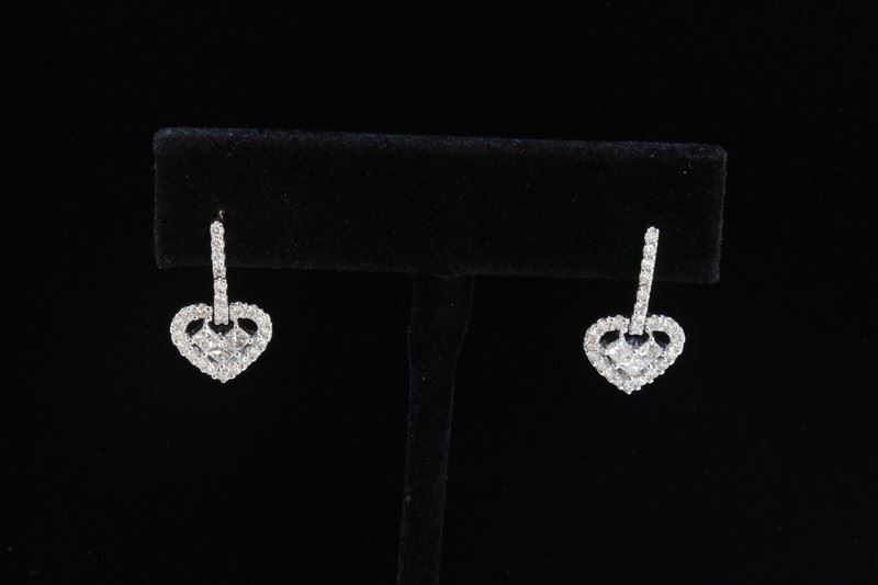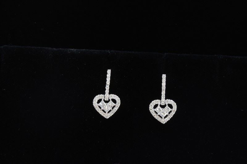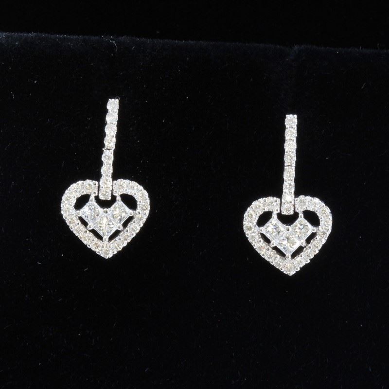 18K White Gold And Diamond Earring Round Shape Diamond-0.60ct Princess Shape Diamond- 0.59ct Weight-4.72Grams/Diamond Color: E-F /Diamond Clarity: VVS/Style#: LQ2209E/Item No : 39786