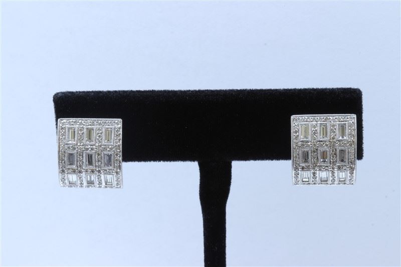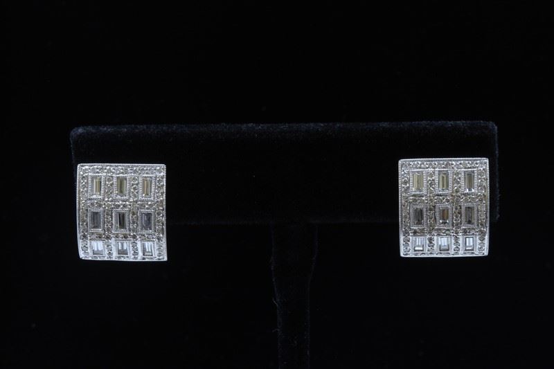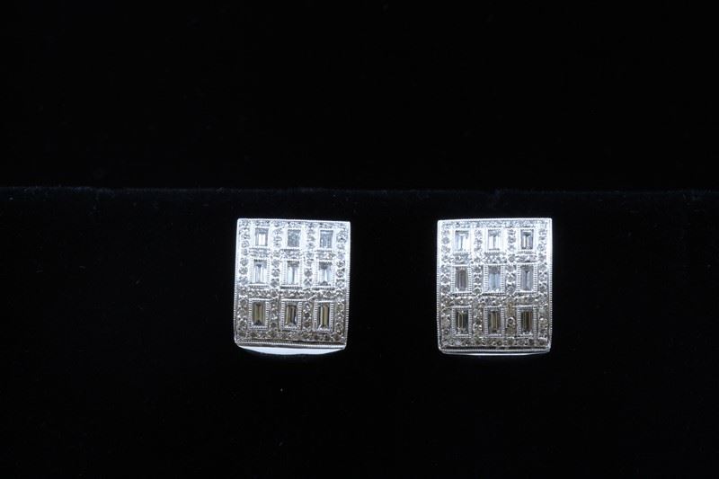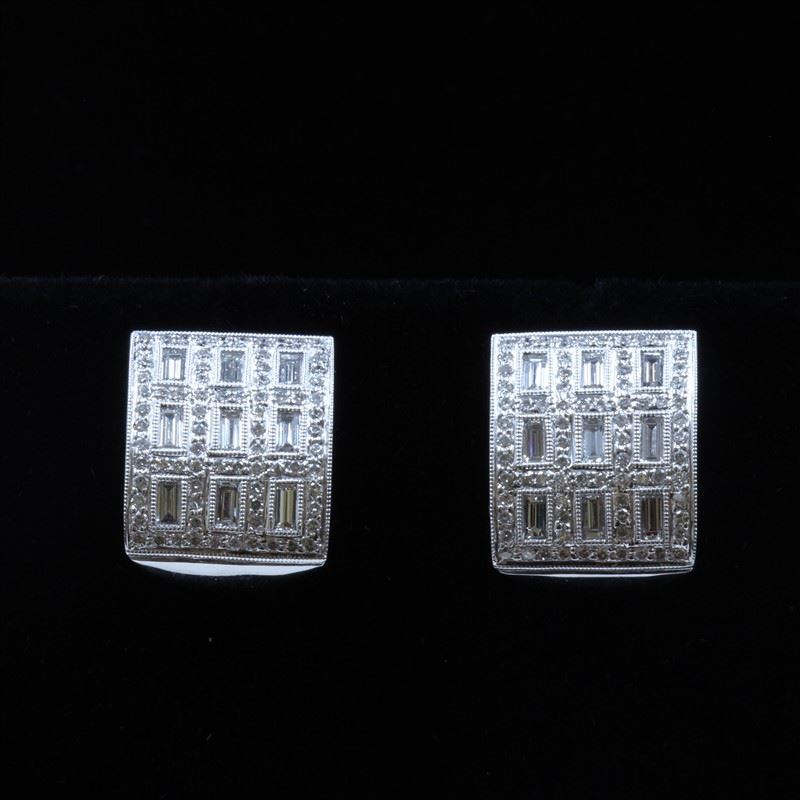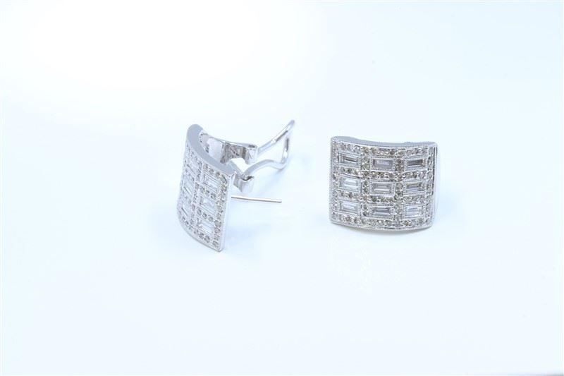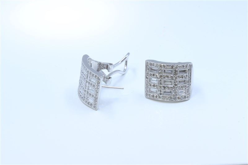 18K White Gold And Diamond Earring Round Shape Diamond- 0.82ct Baguette Shape Diamond- 1.12ct Weight-14.72 Grams/Diamond Color: E-F /Diamond Clarity: VVS/Style#: LQ2650E/Item No : 42142