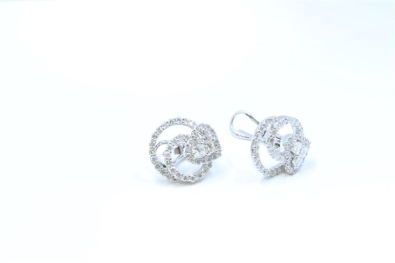 18K White Gold And Diamond Earring Round Shape Diamond-1.19ct Princess Shape Diamond- 0.67ct Weight-6.36 grams/Diamond Color: E-F /Diamond Clarity: VVS/Style#: LQ3148E/Item No : 50420