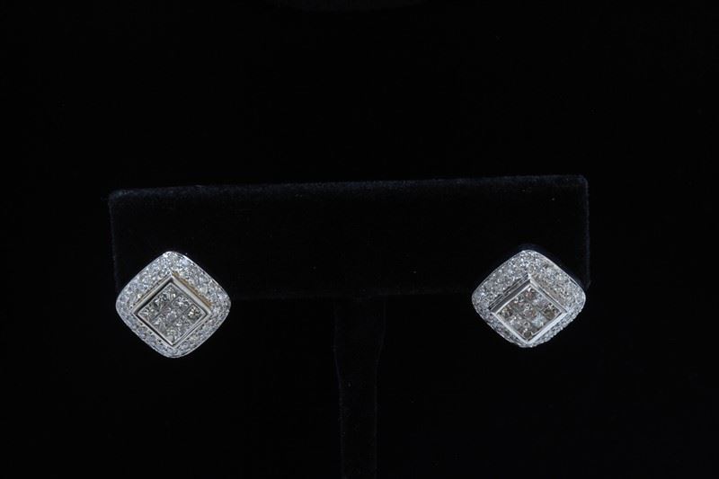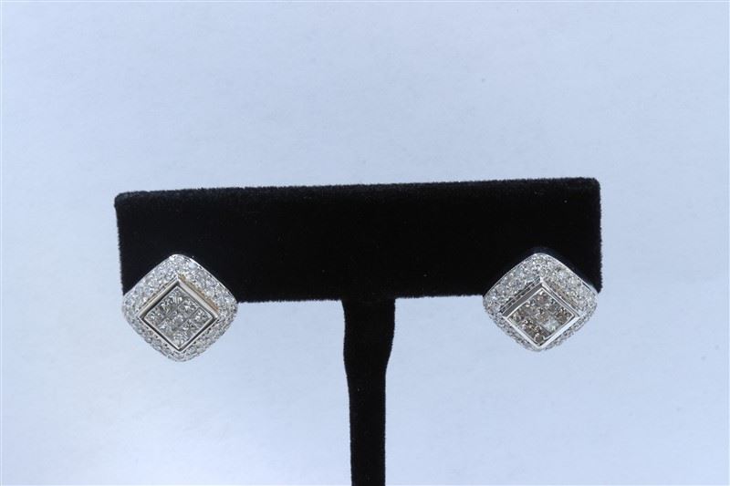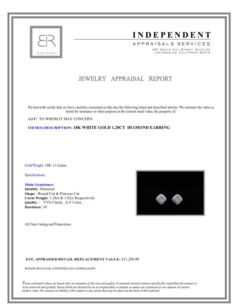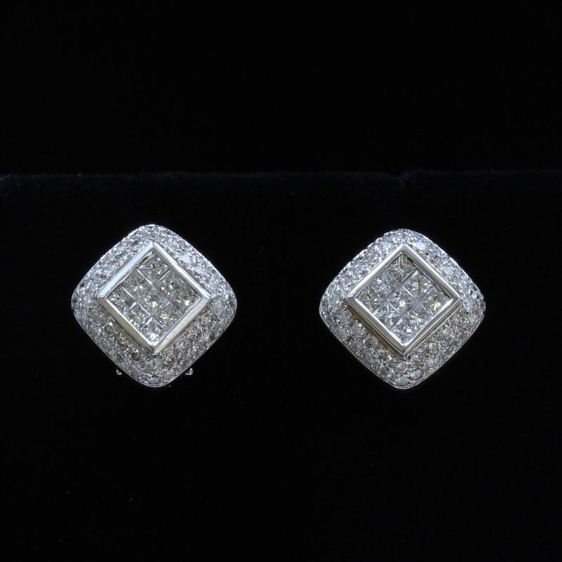 18K White Gold And Diamond Earring Round Shape Diamond- 1.28ct Princess Shape Diamond(invisible Setting)-1.02ct Weight- 11 Grams/Diamond Color: E-F /Diamond Clarity: VVS/Style#: LQ607E/Item No : 23823