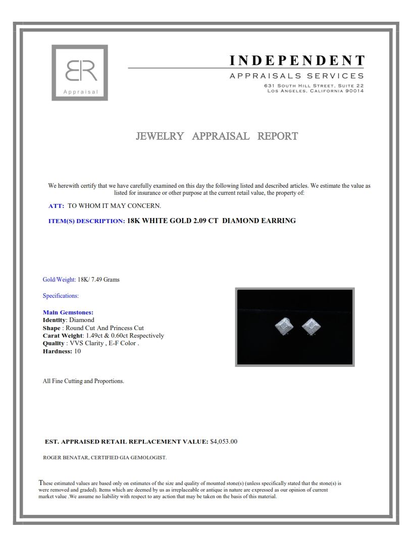 18K White Gold And Diamond Earring Round Shape Diamond-1.49ct Princess Shape Diamond(invisible Setting)-0.60ct Weight-7.49grams/Diamond Color: E-F /Diamond Clarity: VVS/Style#: LQ379E/Item No : 34180