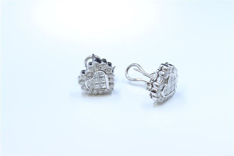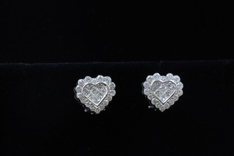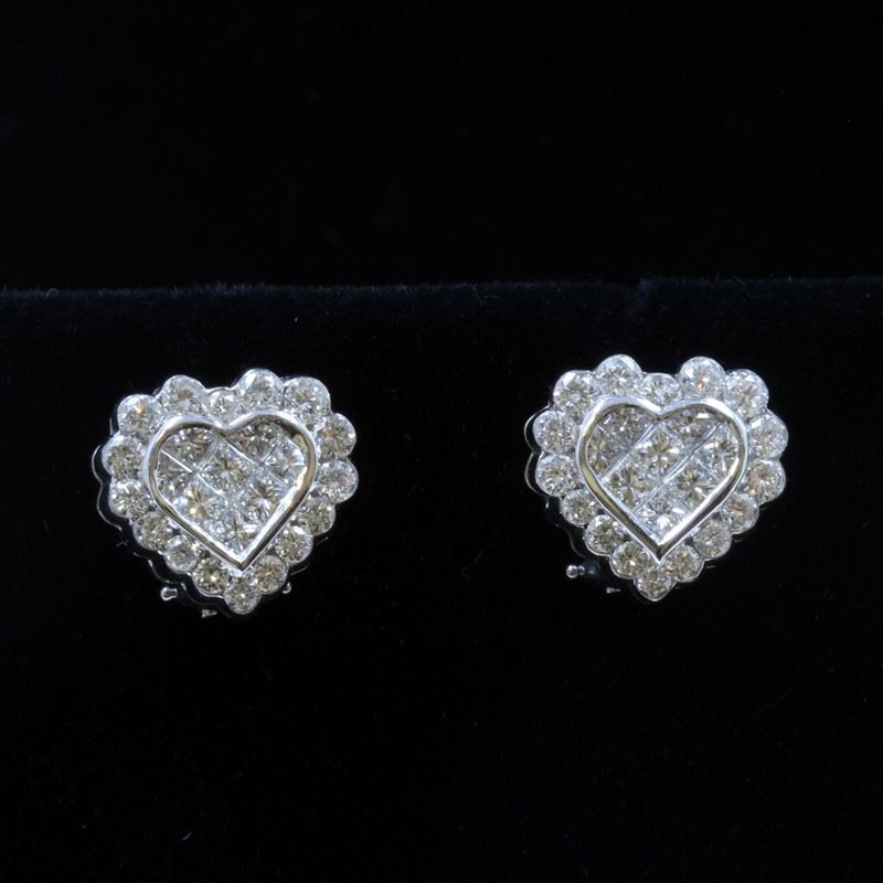 18K White Gold And Diamond Earring Round Shape Diamond-1.53ct Princess Shape Diamond- 1.41ct Weight-9.89 Grams/Diamond Color: E-F /Diamond Clarity: VVS/Style#: 416E/Item No : 34243