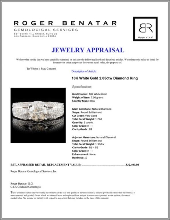 Regarding Appraised Jewelry and Loose Stones - Auctionfarm sends them out to a third party for Retail Replacement Value Appraisals, which are the most common. These types of evaluations are written for insurance needs. This would be the cost to replace the jewelry with an item of equal quality and kind, considered to be the current market price or the replacement value. This type of appraisal is done to protect you in the event of damage or loss of a valuable item. Our appraisals are conducted by independent 3rd Party appraisal firms that utilizes Certified GIA Gemologist. Appraisals should be used for verification of gemstone and/or metal weight, size, and grade only, not actual value. Appraisal value should be considered for insurance purposes only, not actual value, as price varies greatly from retail locations thru out the world. Items should not be purchased with the expectation to resell for appraisal price, or for profit.