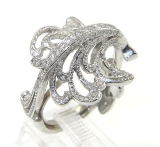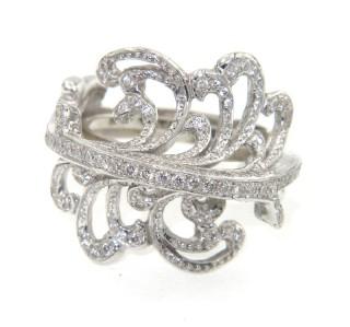 18K White Gold Diamond Ring. The total ring's weight is 9.7 grams. The total weight of diamond is 1.5 cts approximately, I color VS -SI clarity. The size of the ring is 5.25. The measurement of the face of the ring is 21 x 18 mm and 2 mm in thickness