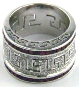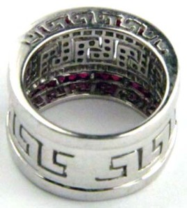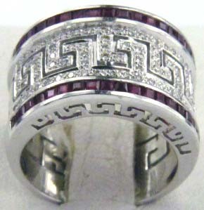18K White Gold Diamond & Ruby RingThe total ring's weight is 13.5 grams.The total weight of diamond is 1.1 ct. approximately and I color SI clarity.The total weight of Ruby is 0.45 ct. approximatelyThe measuremant of the ring on the surface is 13 mm wide and 2 mm in thickness.The size of the ring is 6.5 .