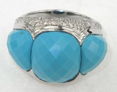 18K White Gold Diamond And Turquoise Ring
