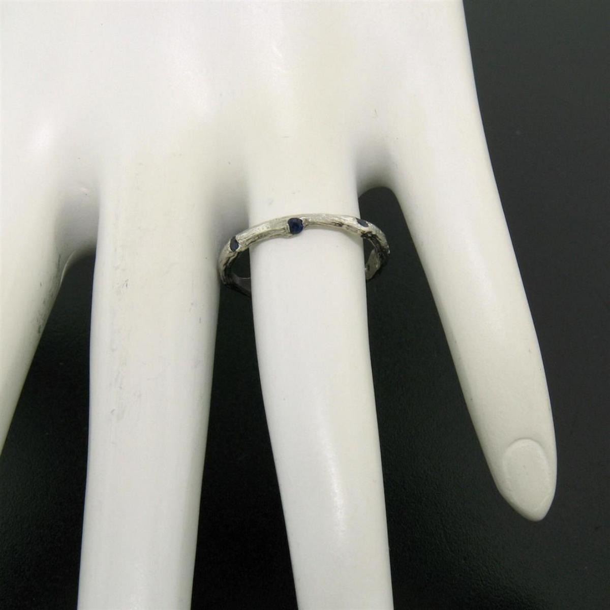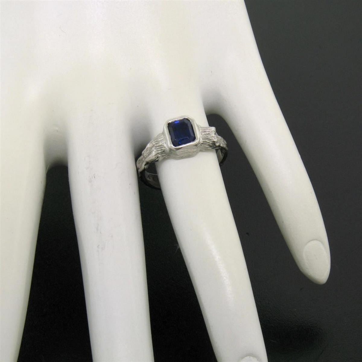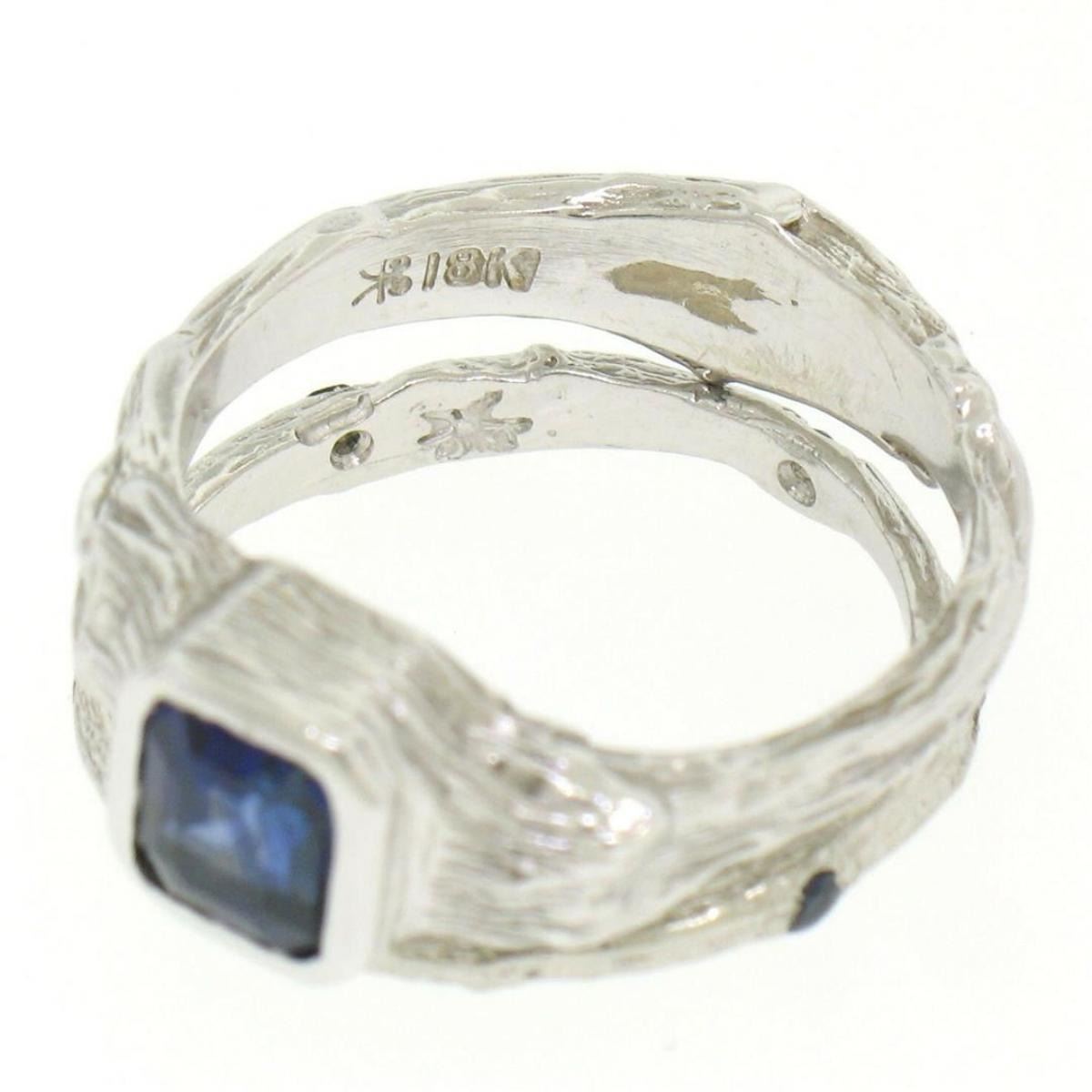 One Estate Branch Textured 18K White Gold 1.25ctw Sapphire Solitaire Ring & Band Set. Item Details: Material: 18K Solid White Gold, Weight: 7.40 Grams (combined), Stone(s): (1) Natural Genuine Sapphire - Emerald Cut - Bezel Set - Very Nice Royal Blue Color - 1.05ct (approx.) VERY FINE SAPPHIRE!, (5) Natural Genuine Sapphire - Round Cut - Bead Set - Royal Blue Color - 0.20ctw (approx.), Total Carat Weight: 1.25 (approx.), Ring Size: 5.75 (solitaire) - 5.50 (band), Ring Width: 7.22mm (solitaire) - 2.53mm (band), Ring Height: 4.90mm rise off the finger (solitaire) - 1.65mm rise off the finger (band). Condition: Estate, like new!
