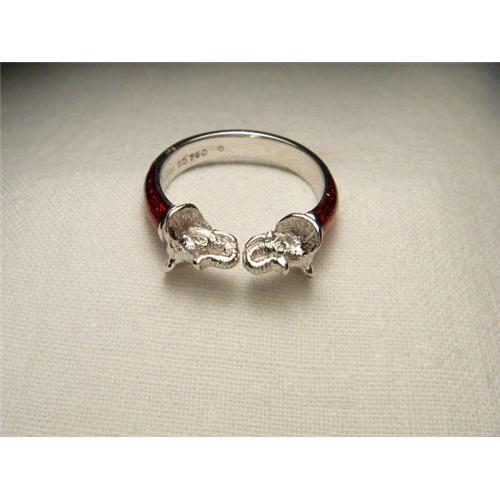 <tr><td>Title:18K White Gold Hidalgo Red Enamel Elephant Ring</td></tr>
