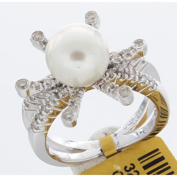 18K White Gold Jewelry 5.73ctw Pearl & Diamond Ring --- 38 Diamonds @0.48CT --- 1 Pearl @5.25CT --- Metal weight: 7.23 grams --- Metal: 18K White Gold Jewelry --- Subject to pre-sale --- FJM 2489-327012