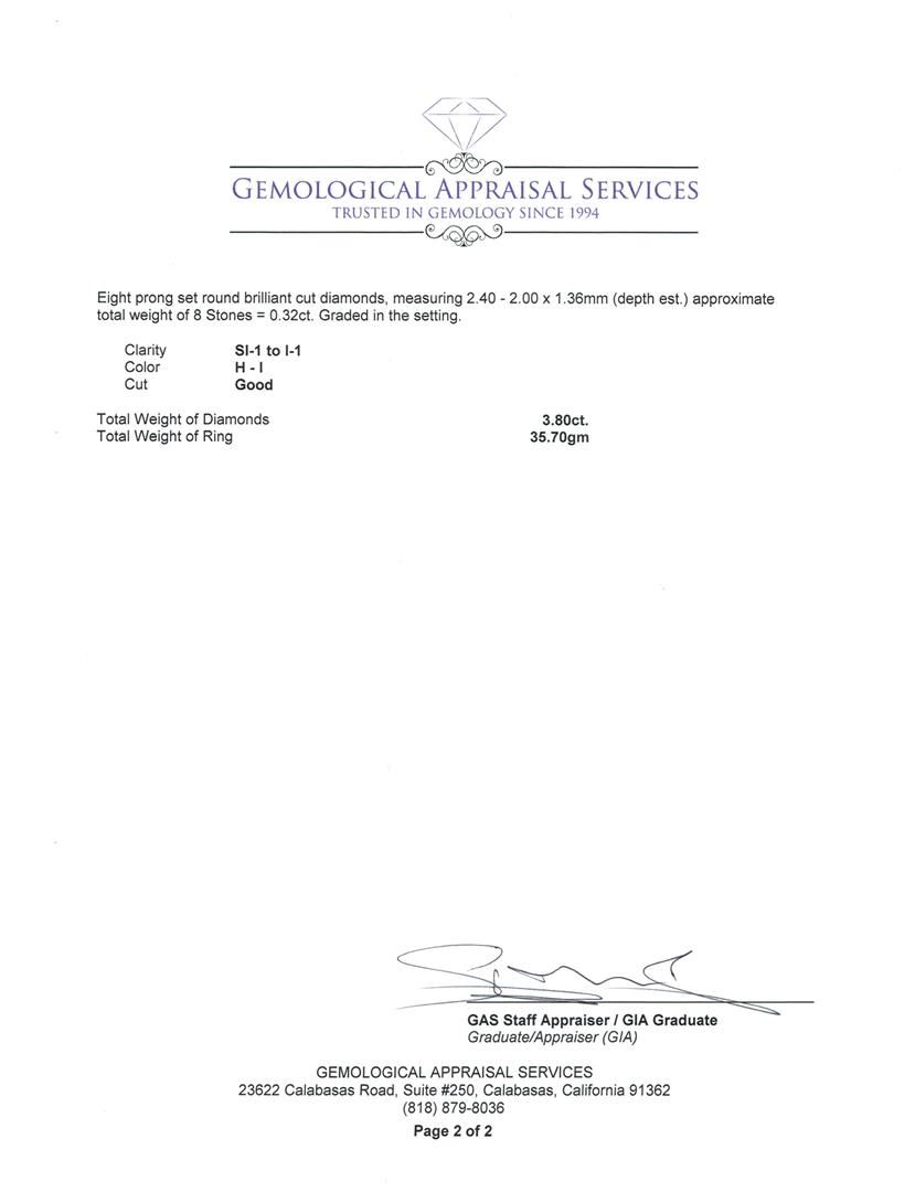 Not all Jewelry, watches or loose stones are appraised and the appraisals are provided for bidders only in certain instances at the discretion of BKA. Our appraisals are conducted by independent third-party appraisal firms. Such firms may be certified GIA Gemologists or have education in the industry or alternative certifications. Appraisals should be used for verification of gemstone and/or metal weight, size, and grade only, not actual value for resale or insurance purposes. Appraisal value should be not considered for actual value, as price varies greatly from retail locations and other merchants in different geographic locations. All Items auctioned by BKA should not be purchased with a view or expectation toward resale for appraisal price given, or to make a profit. The ultimate value for which an item can be resold may vary drastically from the appraisals listed by BKA.