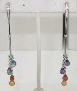 18K White Gold Multi- Colored Stone & Diamond Earrings.Earrings' Weight: 8.1 gram.The total weight of diamond: 0.26 cts., approximately. H color VS clarity.The length of Earring: 3".The measurement of multi- colored stone: 4 - 5 x 3 mm.