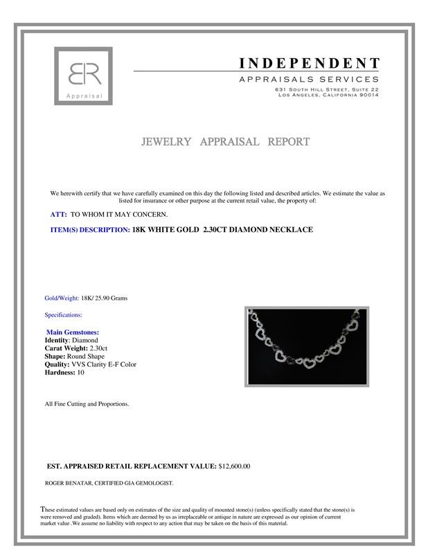 18K White Gold Necklace/Diamond- 2.30ct/Diamond Color: E-F /Diamond Clarity: VVS/Style#: LQ1171N/SKU : GN012