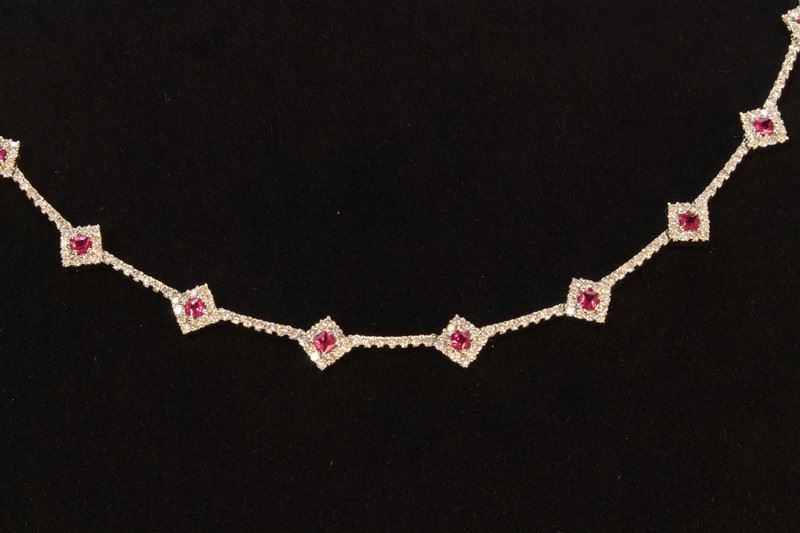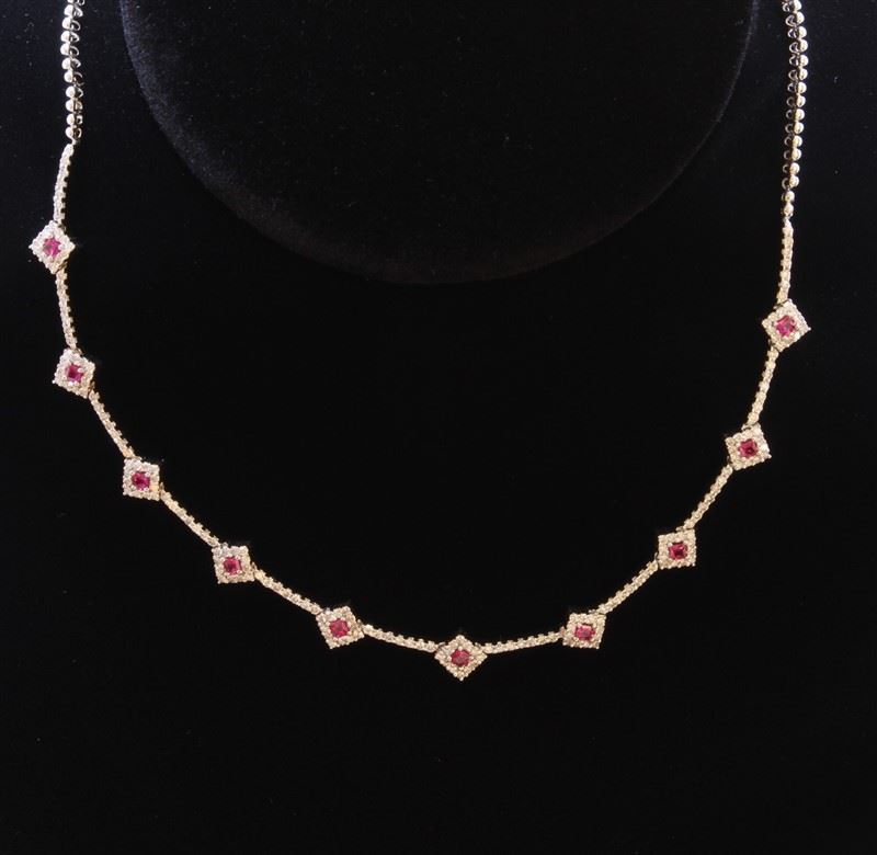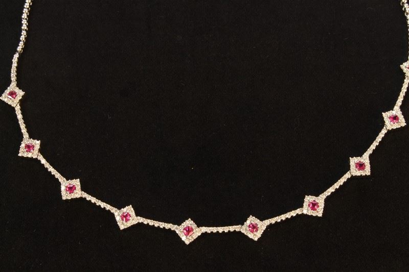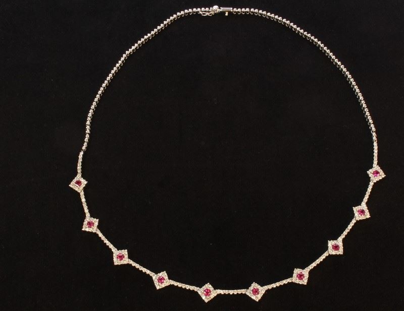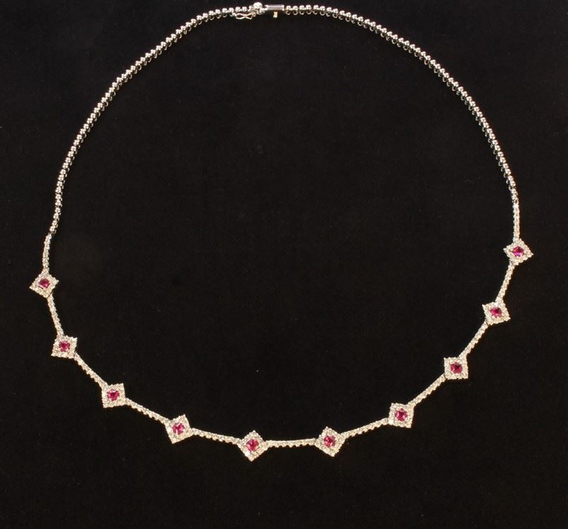 18K White Gold Necklace/Diamond- 2.47ct/Ruby- 1.11ct/Gold- 21.70 Grams/Diamond Color: E-F /Diamond Clarity: VVS/Style#: LQ705N/SKU : GN010