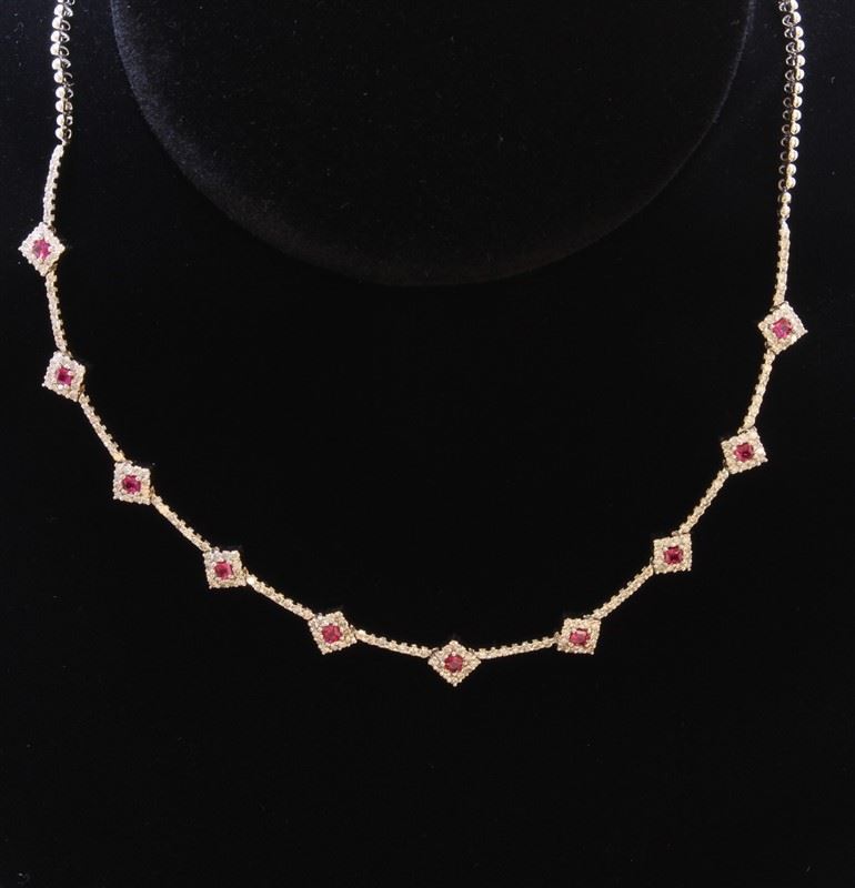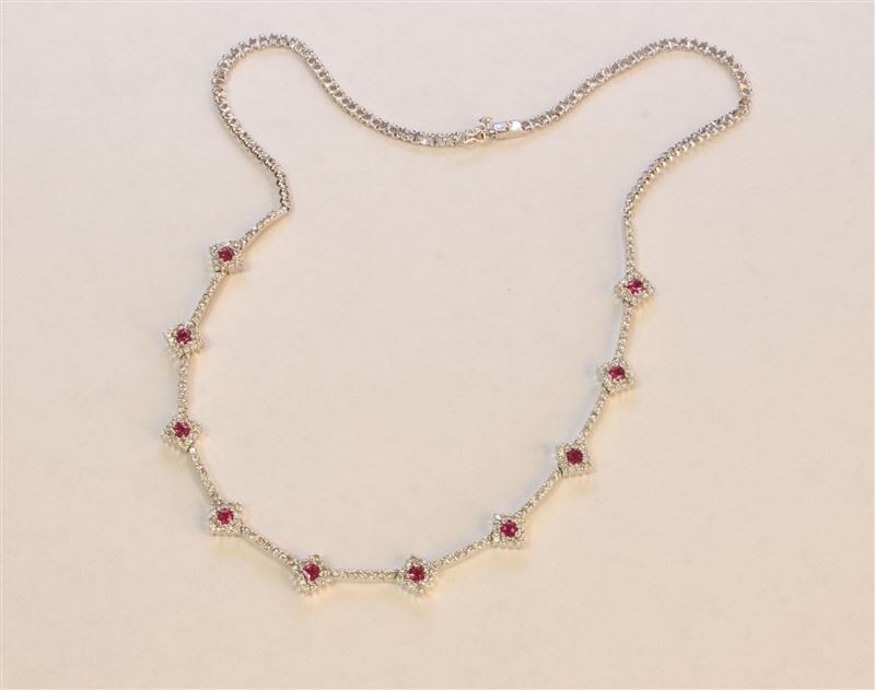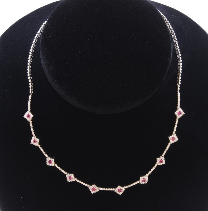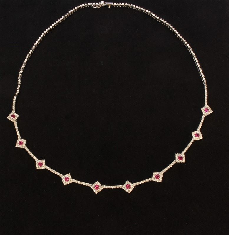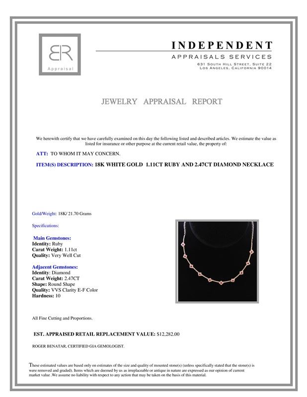 18K White Gold Necklace/Diamond- 2.47ct/Ruby- 1.11ct/Gold- 21.70 Grams/Diamond Color: E-F /Diamond Clarity: VVS/Style#: LQ705N/SKU : GN010
