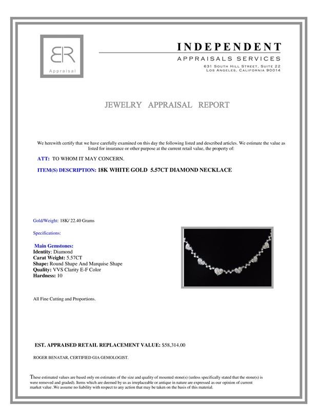 18K White Gold Necklace/Round Shape Diamond- 3.72ct/Marquee Shape Diamond- 1.85ct/Diamond Color: E-F /Diamond Clarity: VVS/Style#: LQ1620N/SKU : GN018