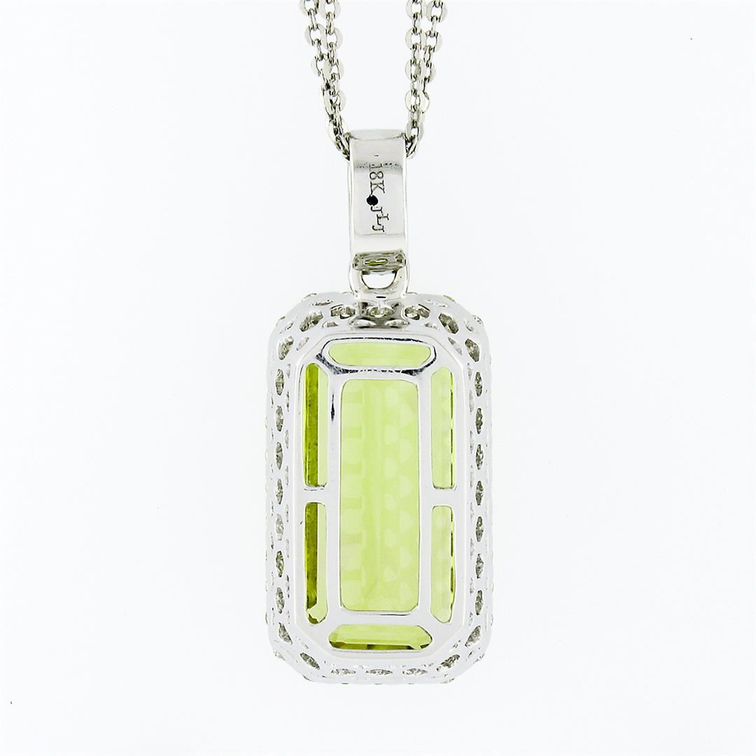 A solid 18k white gold pendnat necklace, with 1 elongated rectangular cut natural lemon quartz (18.15x8.9mm), and 46 round brilliant cut natural diamonds (F/G - VS1/VS2 ; 0.70ctw). 17 inch dual cable link chain, 7.88 grams total weight, pendant measures 2