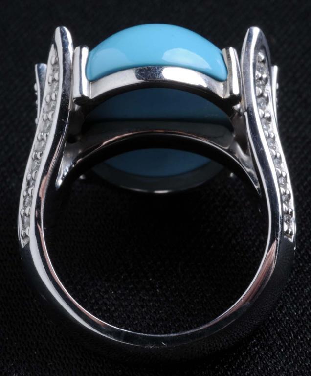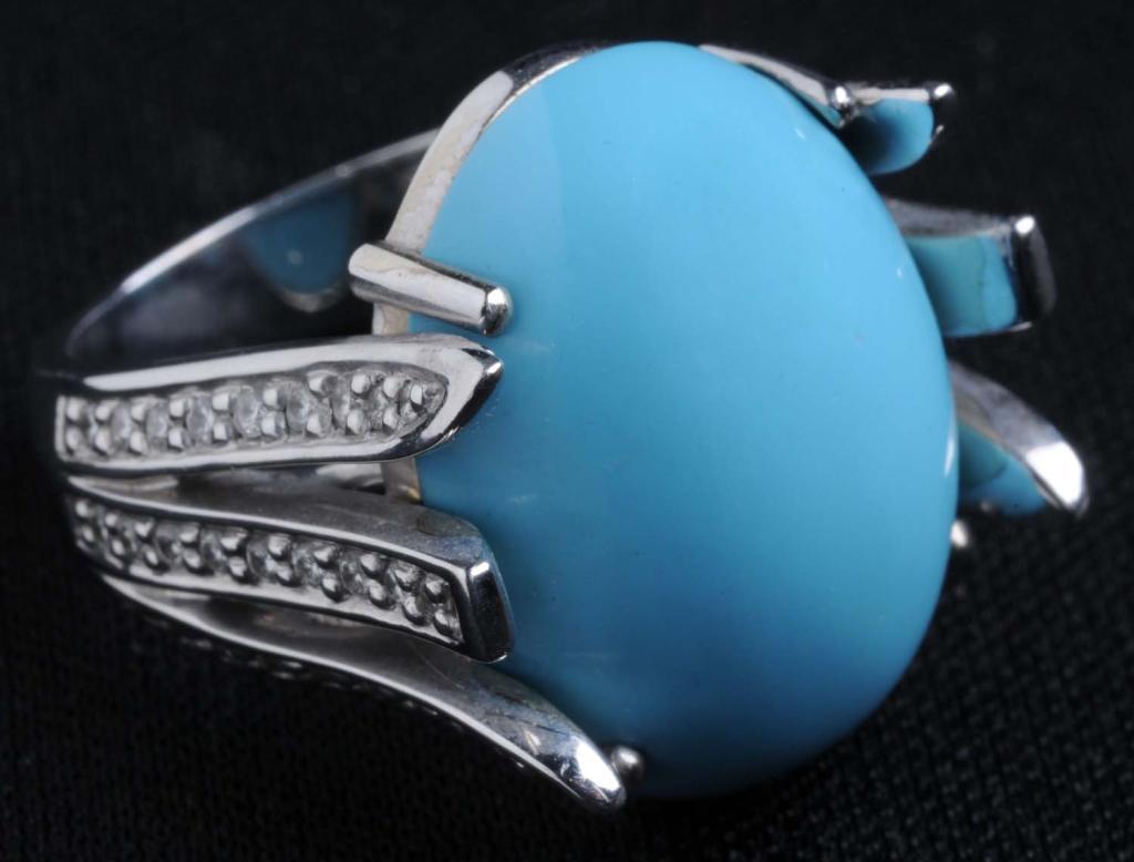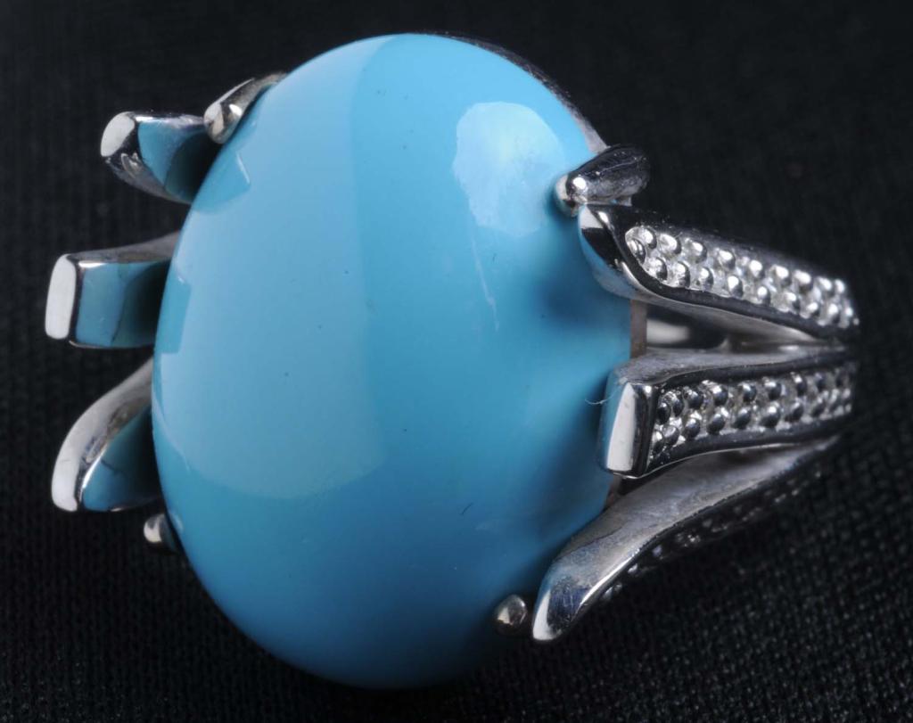 Description 60 small diamond flank sides of turquoise stone. Condition (Excellent).