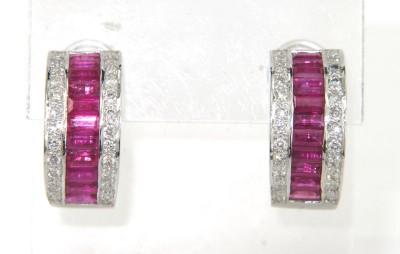 18K White Gold Diamond & Ruby Earrings.The total earrings weight is 8.8 grams.Total weight of diamond is 0.8 cts. approximately. H color VS clarity.Total invisible set Ruby weight is 2.2 cts. approximately.The earring size is 17 x 10 mm.The earring is 8 mm wide and 2 mm in thickness.
