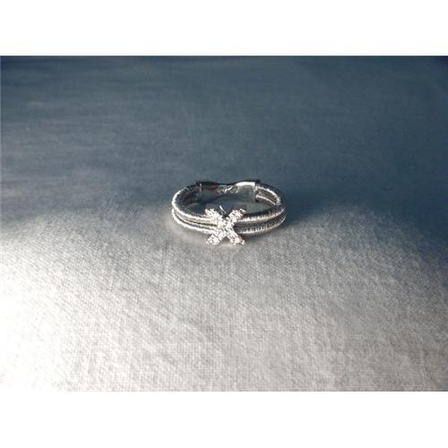 <tr><td>Title:18K White Gold WG Diamond X Mesh Band Ring</td></tr>