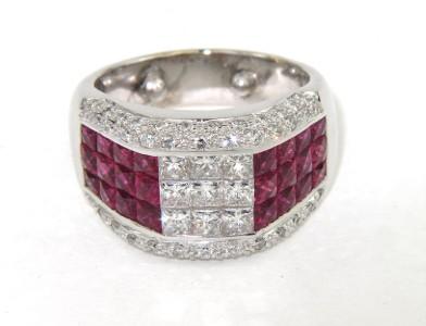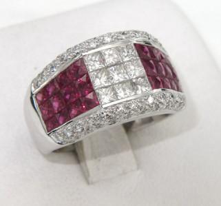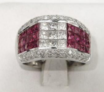 18K White Gold With Ruby And Diamond Ring