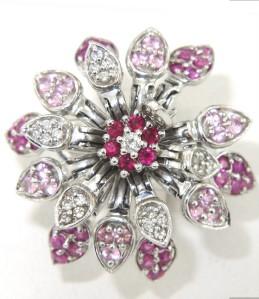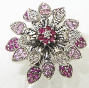 The total ring weight is 16.5 grams. The total diamond weight is 0.24 cts ,approxmiately. I color, SI clarity. The total of Ruby weight: 1.08cts. approxmiately. The measure of the ring surface is 25 x 25 mm. The size of ring: 6