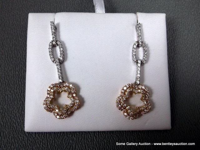 18K White Gold and 18K Yellow Gold Dangle Star Pattern Earrings~1.31ct Tw Weight: 5.8 Grams Retail: