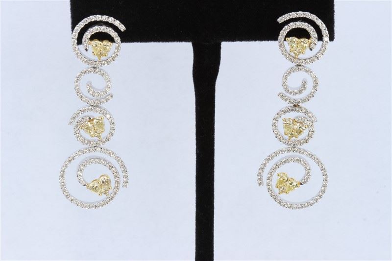 18K White & Yellow Gold And Diamond Dangling Earring Round Shape Diamond-2.63ct Princess Shape Yellow Diamond- 0.26ct Pear Shape Yellow Diamond- 1.53ct Weight-17.72 Grams/Diamond Color: E-F /Diamond Clarity: VVS/Style#: LQ4254E/Item No : 59450