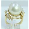 18K Y/G DIAMOND RING WITH PEARL/8.40 GRAMS/DIAMOND MARQUISE 1.12CT/BAGUETTE DIAMOND 0.86CT/PEARL 14.35mm