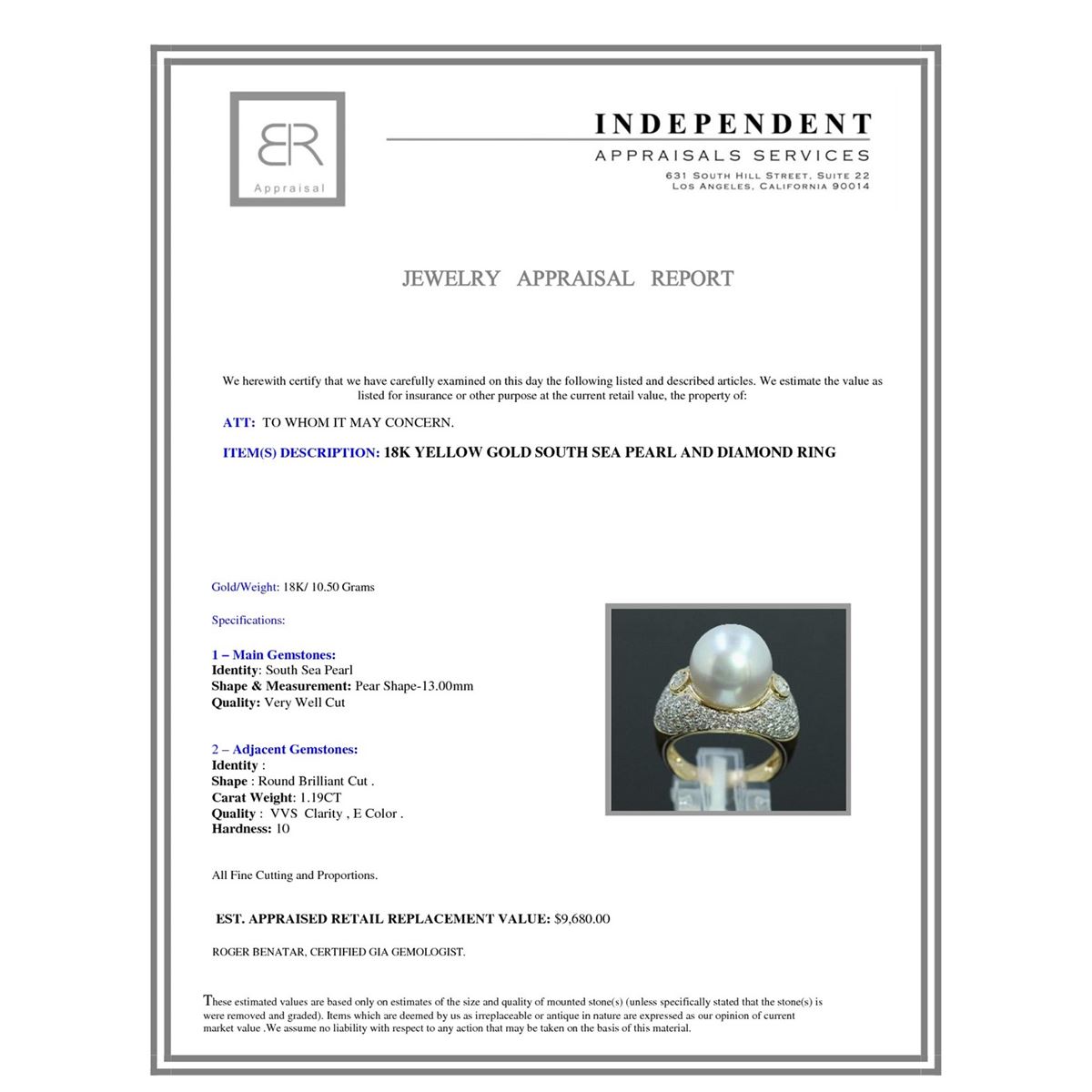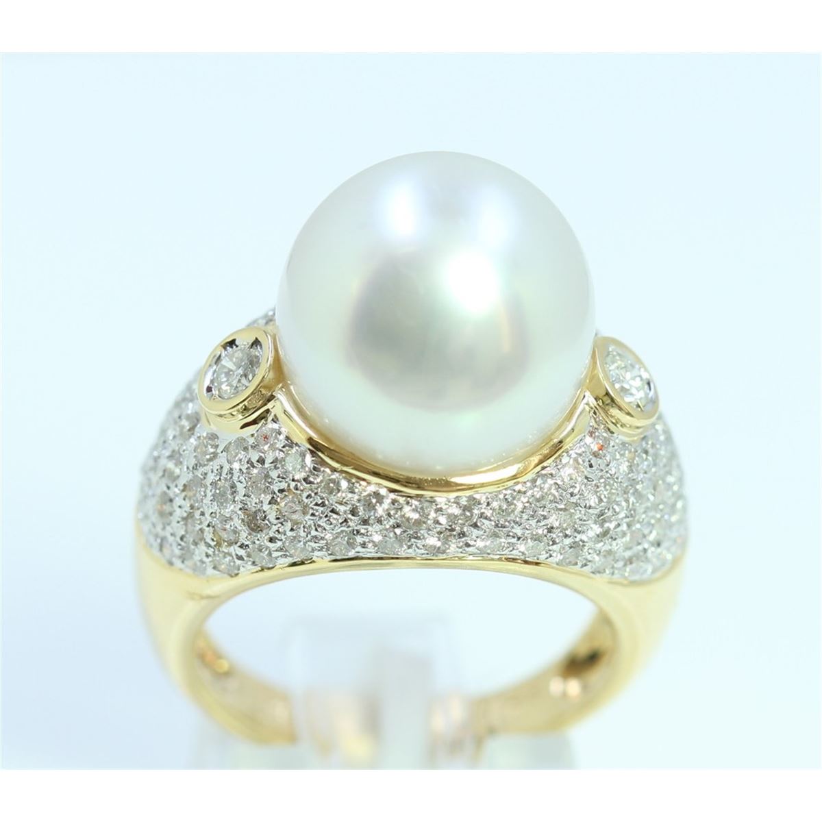 18k Y/G SOUTH SEA PEARL AND DIAMOND RING/10.50 GRAMS/ROUND DIAMOND 1.19CT/PEARL 13.00MM