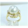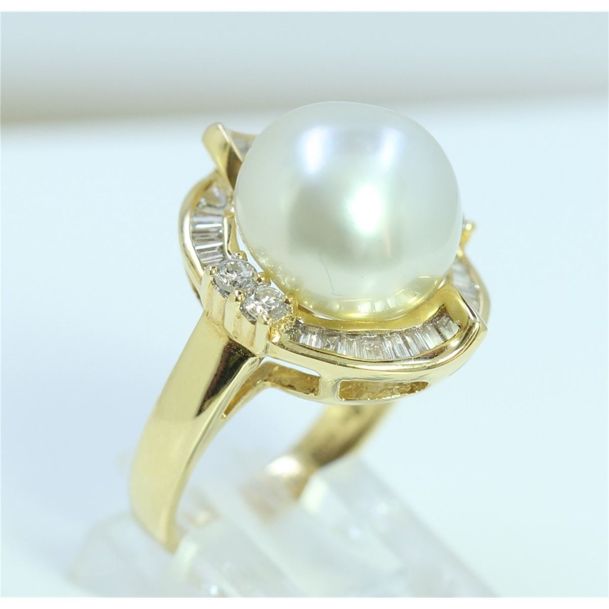 18K Y/G SOUTH SEA PEARL AND DIAMOND RING/8.3 grams/BAGUETTE DIAMOND 0.66CT/ROUND DIAMOND 0.24CT/ PEARL 13.1 mm