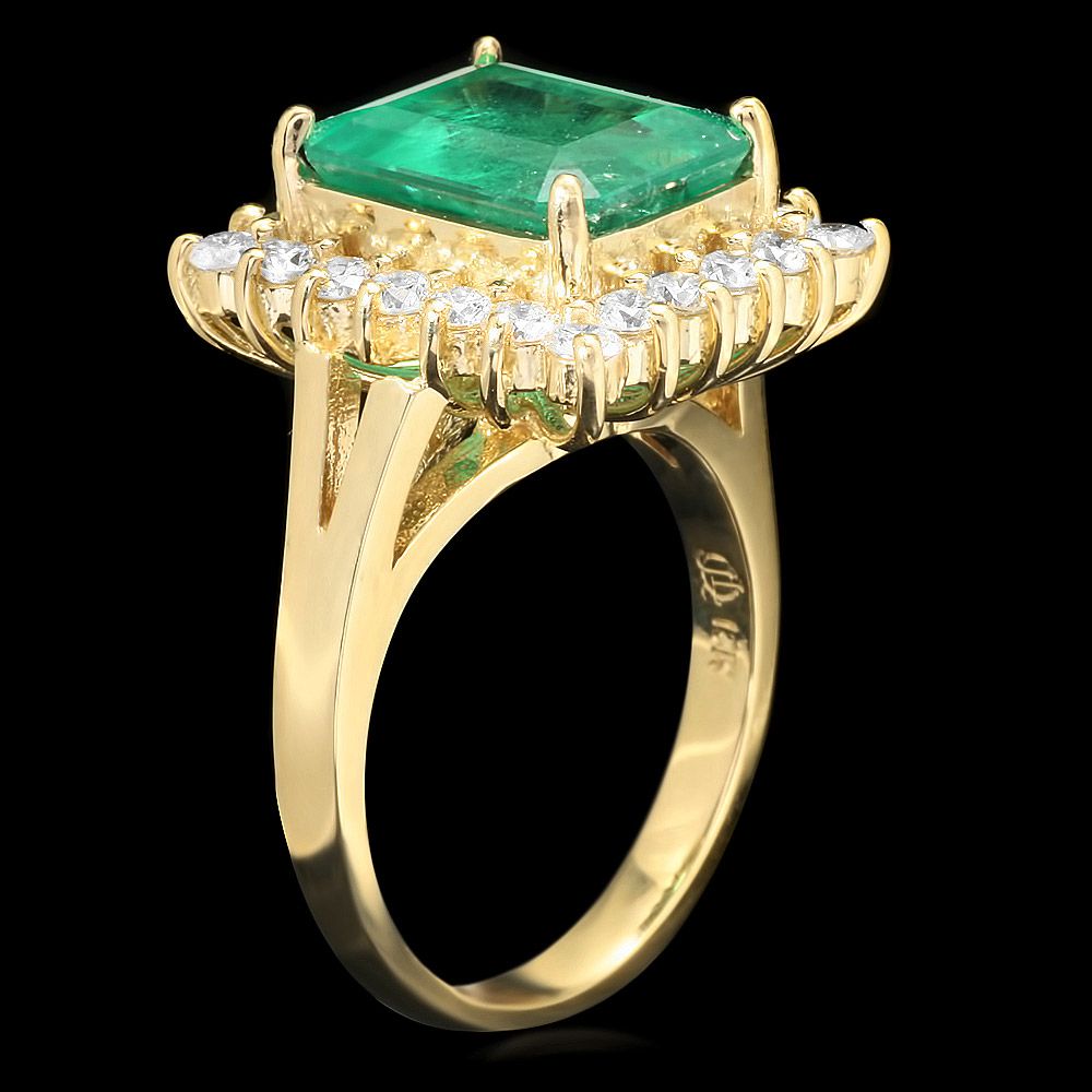 Retail: $18600.00 ****** Metal: 18k Solid Yellow Gold / Size: 7 / Total Item Weight: 9 grams / Country Made: USA / / Main Stone: Emerald / Color: Green / Carat Total Weight: 4.30 / Treatment: None / Clarity: Type 2 / Cut: Very Good / / Secondary Stone: Diamond / Carat Total Weight: 1 / Treatment: None / Color Grade: G - H / Clarity: SI1 - SI2 / Cut: Very Good / ****** Ref: JQL-R-4587