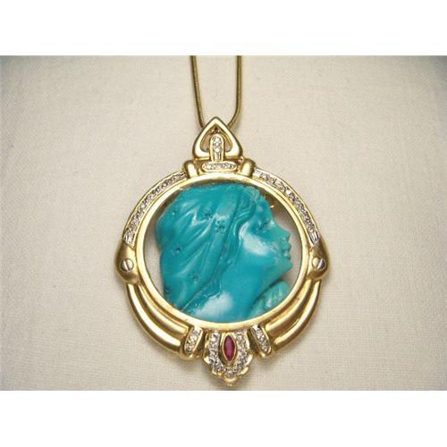<tr><td>Title:18K YG Diamond Ruby Turquoise Cameo Pendant</td></tr>