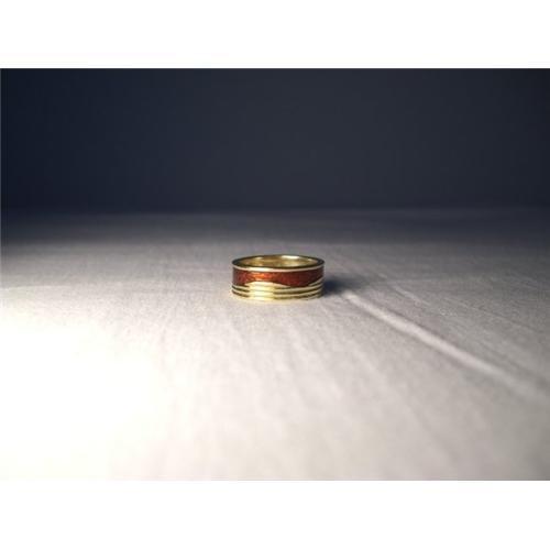 <tr><td>Title:18K YG Hidalgo Red Enamel Wide Insert Band</td></tr>