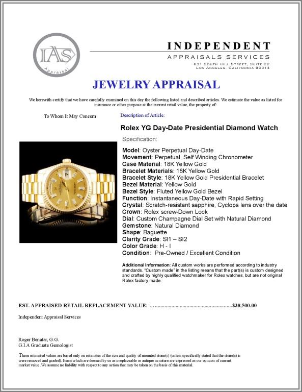 Bracelet Style: 18K Yellow Gold Presidential Bracelet