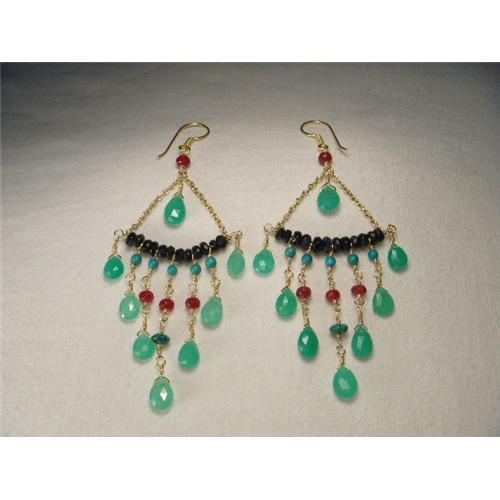 <tr><td>Title:18K YG Ruby Emerald Turquoise Sapphire Earrings</td></tr>