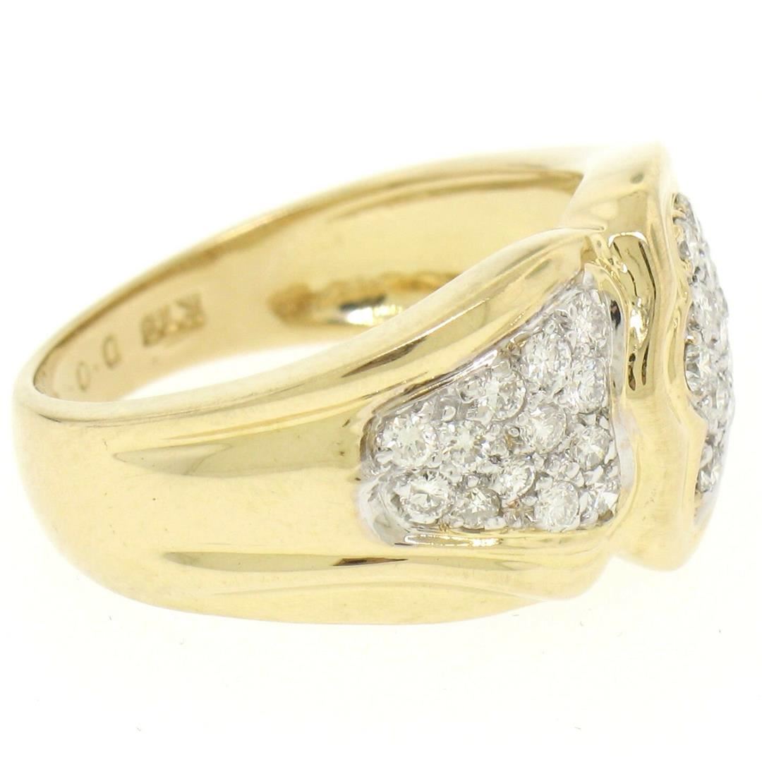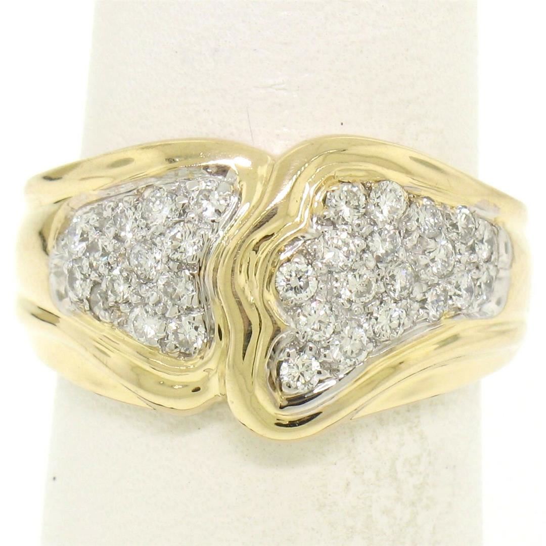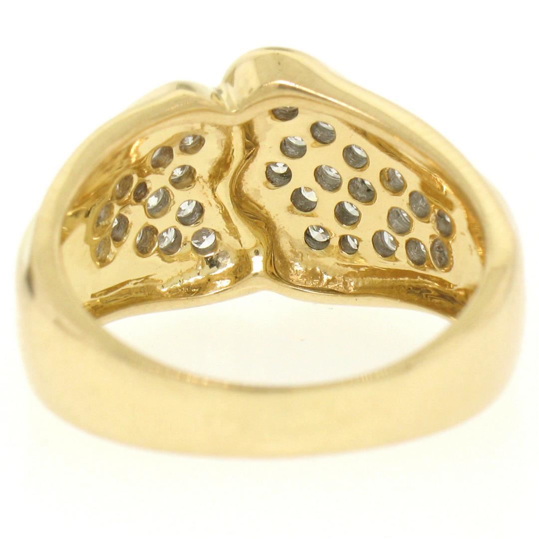 One 18K Yellow Gold 0.50ctw F VS1 Pave Set Round Diamond Wavy Cluster Wide Band Ring. Item Details: Material: 18K Solid Yellow Gold, Weight: 7.62 Grams, Stone(s): (31) Natural Genuine Diamonds - Round Brilliant Cut - Pavé Set - F Color - VS1 Clarity, Total Carat Weight: 0.50 (exact - stamped), Ring Size: 7.0 (We can custom size this ring.), Ring Width: 12.15mm, Ring Height: 4.30mm rise off the finger, Condition: Like new!