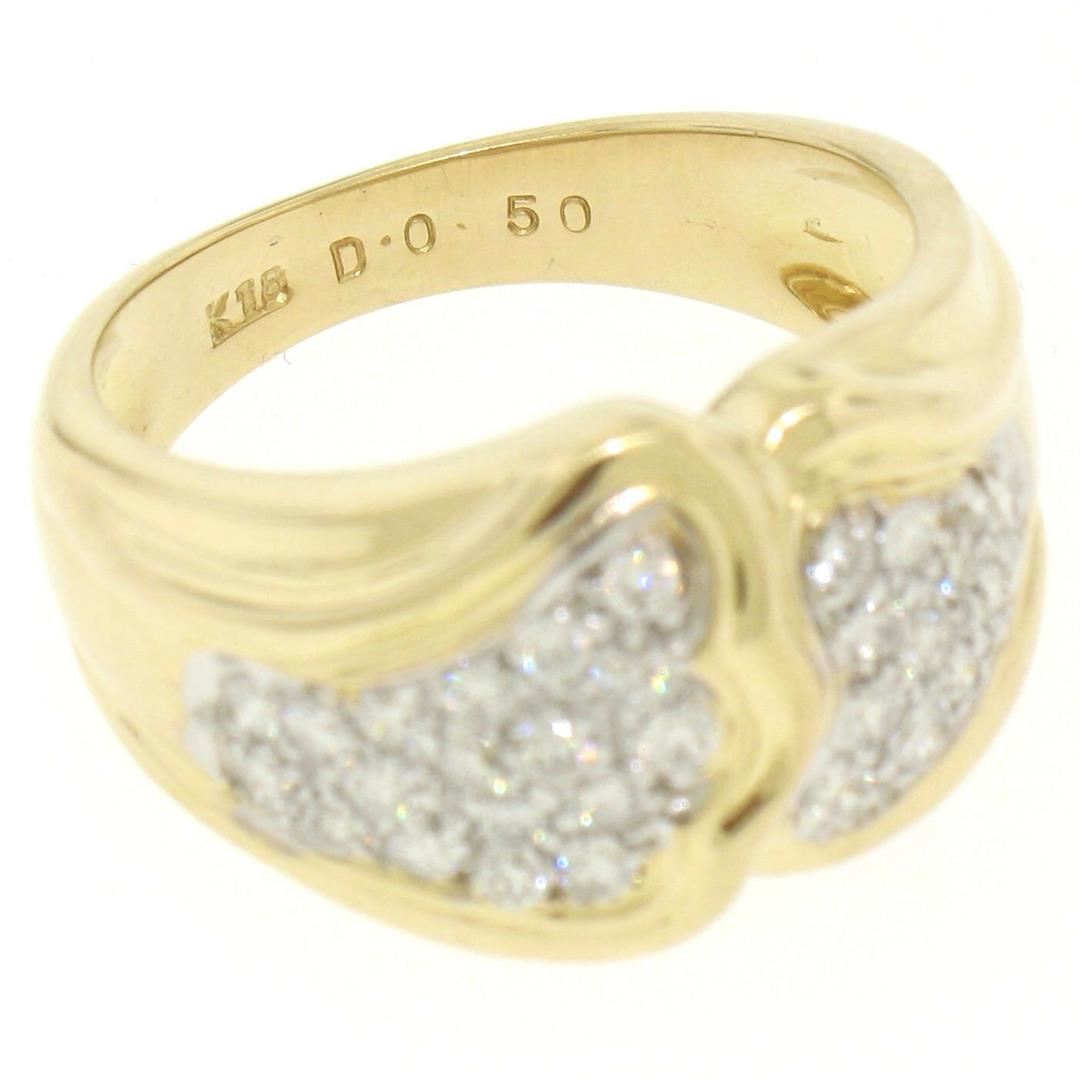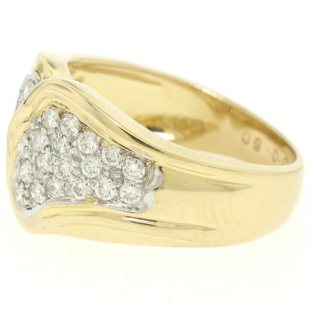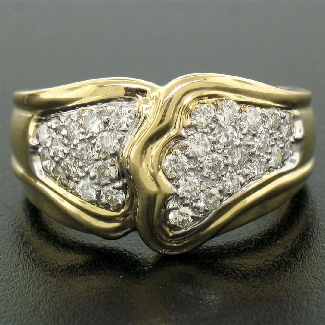One 18K Yellow Gold 0.50ctw F VS1 Pave Set Round Diamond Wavy Cluster Wide Band Ring. Item Details: Material: 18K Solid Yellow Gold, Weight: 7.62 Grams, Stone(s): (31) Natural Genuine Diamonds - Round Brilliant Cut - Pavé Set - F Color - VS1 Clarity, Total Carat Weight: 0.50 (exact - stamped), Ring Size: 7.0 (We can custom size this ring.), Ring Width: 12.15mm, Ring Height: 4.30mm rise off the finger, Condition: Like new!