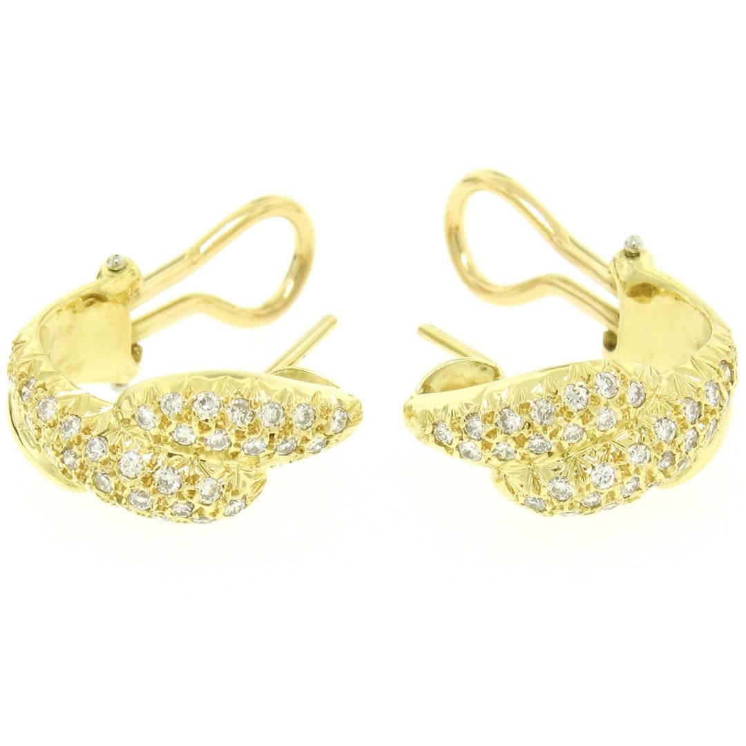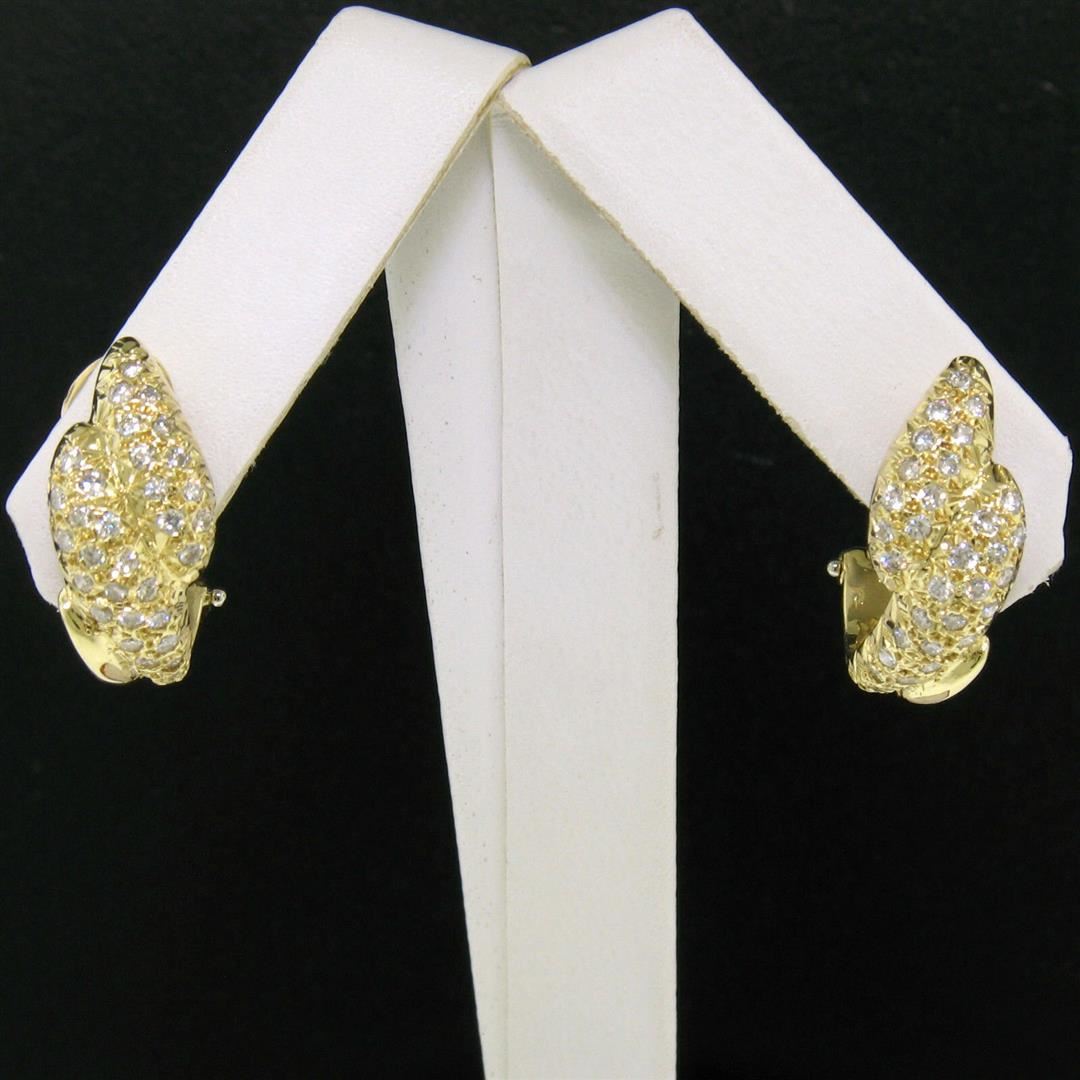 One 18K Yellow Gold 0.64ctw Pave FINE Round BRILLIANT Diamond Huggie Hoop Earrings. Item Details: Material: 18k Solid Yellow Gold, Weight: 9.09 Grams, Stone(s): (64) Natural Genuine Diamonds - Round Brilliant Cut - Pavé Set - VVS2/VS1 Clarity - E/F Color, Total Carat Weight: 0.64 (approx.), Backing: Omega Fastenings w/ Posts (Pierced ears are required.), Width: 8.63mm, Height: 19.17mm, Thickness: 8.05mm projection off the ear Condition: Like New!