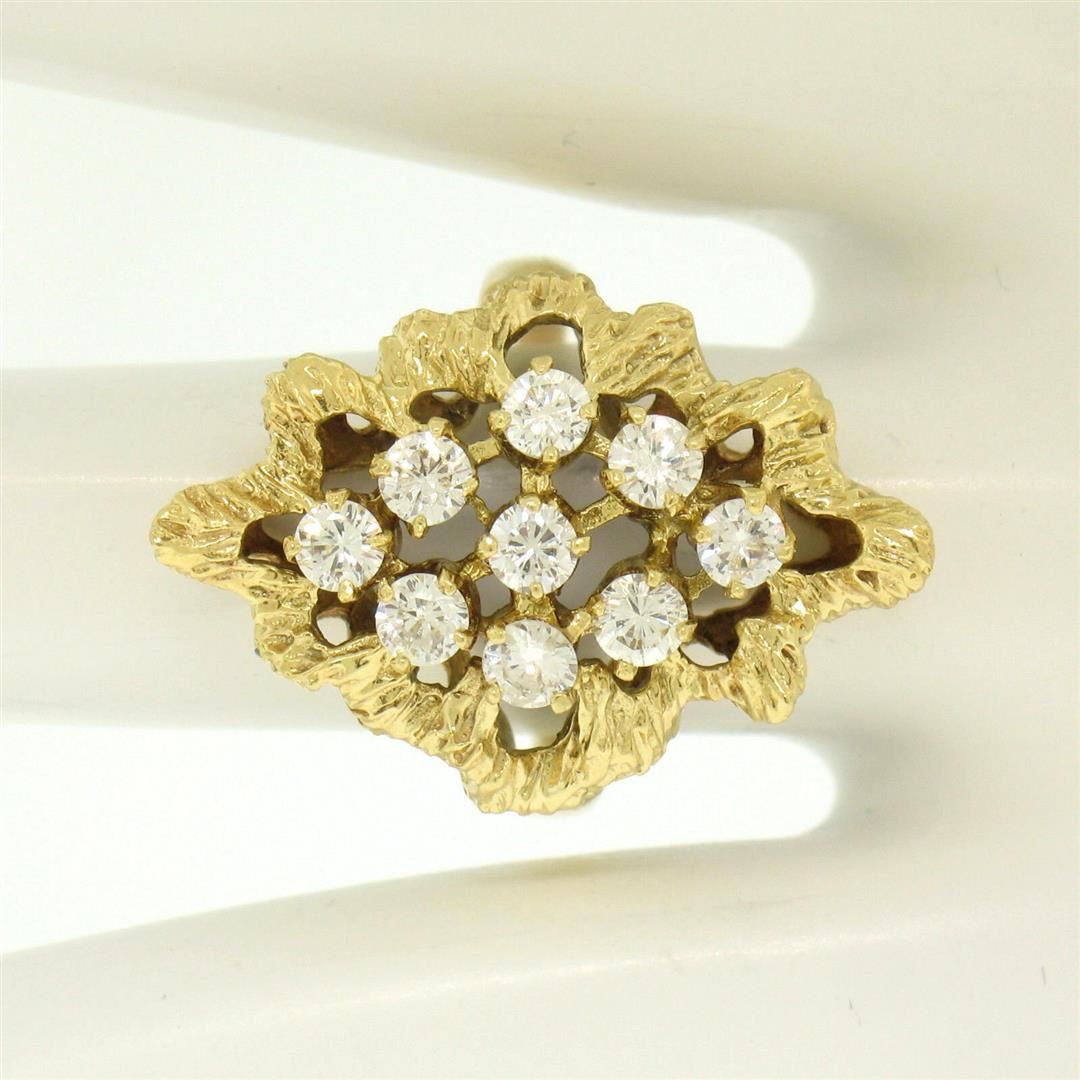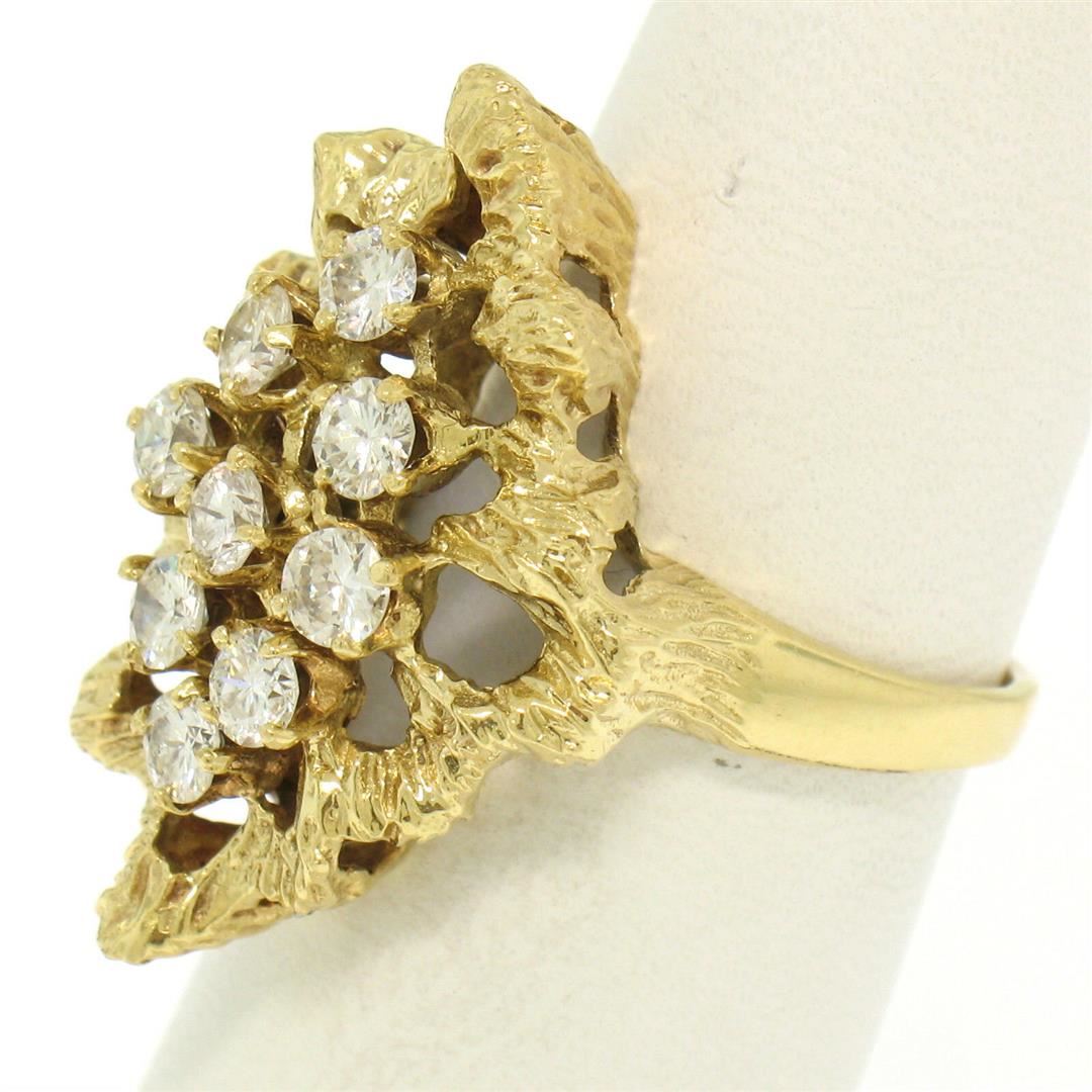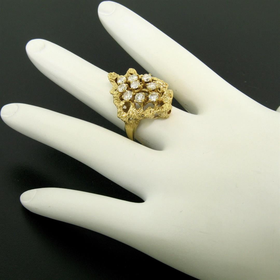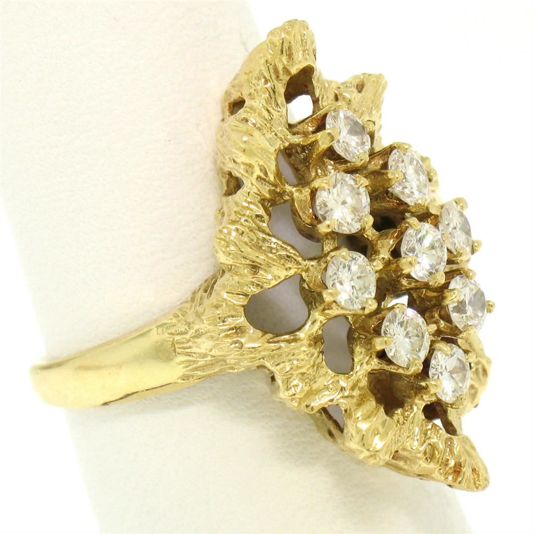 One Estate 18K Yellow Gold 1.00ctw F VS1 Diamond Open Textured Nugget Cocktail Ring. Item Details: Material: 18K Solid Yellow Gold, Weight: 7.0 Grams, Stone(s): (9) Natural Genuine Diamonds - Round Brilliant Cut - Prong Set - F Color - VS1 Clarity - 1.00ctw (approx.), Total Carat Weight: 1.00 (approx.), Ring Size: 6.5 (We can custom size this ring.), Ring Width: 26.15mm, Ring Height: 9.56mm rise off the finger, Condition: Like New!