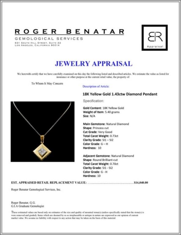 Regarding Appraised Jewelry and Loose Stones - Auctionfarm sends them out to a third party for Retail Replacement Value Appraisals, which are the most common. These types of evaluations are written for insurance needs. This would be the cost to replace the jewelry with an item of equal quality and kind, considered to be the current market price or the replacement value. This type of appraisal is done to protect you in the event of damage or loss of a valuable item. Our appraisals are conducted by independent 3rd Party appraisal firms that utilizes Certified GIA Gemologist. Appraisals should be used for verification of gemstone and/or metal weight, size, and grade only, not actual value. Appraisal value should be considered for insurance purposes only, not actual value, as price varies greatly from retail locations thru out the world. Items should not be purchased with the expectation to resell for appraisal price, or for profit.