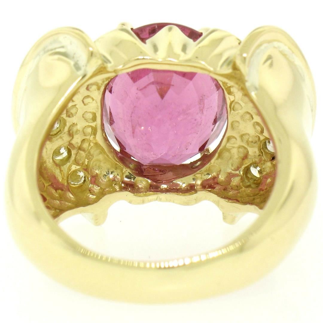 One LARGE 18K Yellow Gold 6.54ct Oval Pink Tourmaline & Round Diamond Cocktail Ring. Item Details: Material: 18K Solid Yellow Gold, Weight: 14.48 Grams, Stone(s): (1) Natural Genuine Tourmaline - Oval Step-Style Cut - Prong Set - Rich and Vivid Pink Color - 13.25x10.70mm / 6.54ct (approx.), (10) Natural Genuine Diamonds - Round Brilliant Cut - Channel Set - F Color - VS1 Clarity - 0.90ctw (approx.), Total Carat Weight: 7.44 (approx.), Ring Size: 6.5, Ring Width: 17.68mm, Ring Height: 7.30mm rise off the finger Condition: Outstanding, like new condition!
