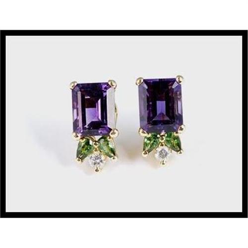 <tr><td>Title:18K Yellow Gold Amethyst Tsavorite Earrings.</td></tr>