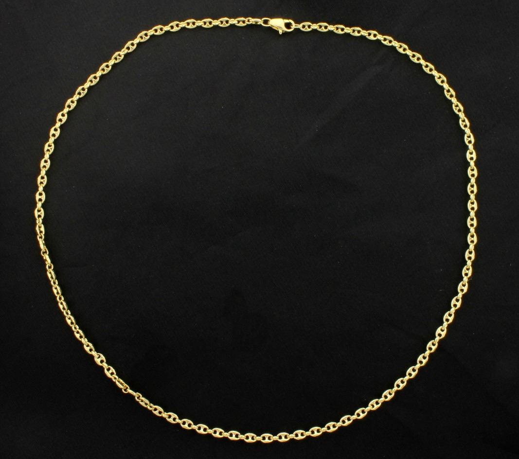 This chain is kind of a mix between an anchor chain and a cable chain. It is 18 inches long and 3.2mm wide, also it has a lobster clasp. 13.6g