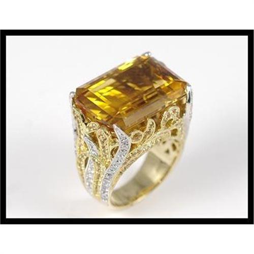 <tr><td>Title:18K Yellow Gold Citrine and Diamond Ring</td></tr>