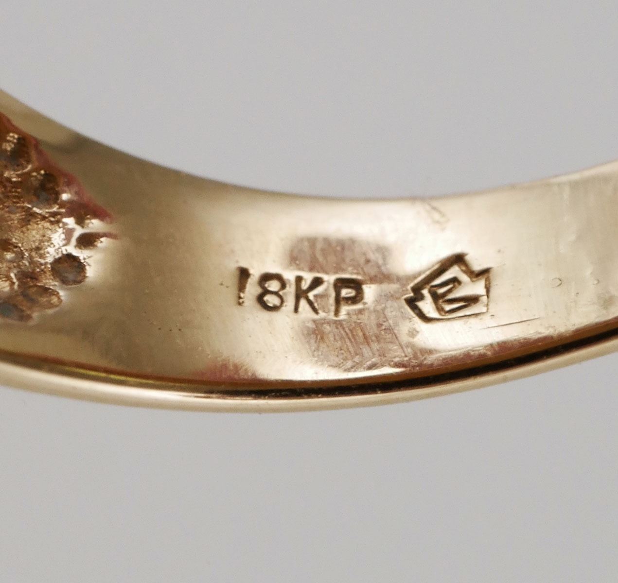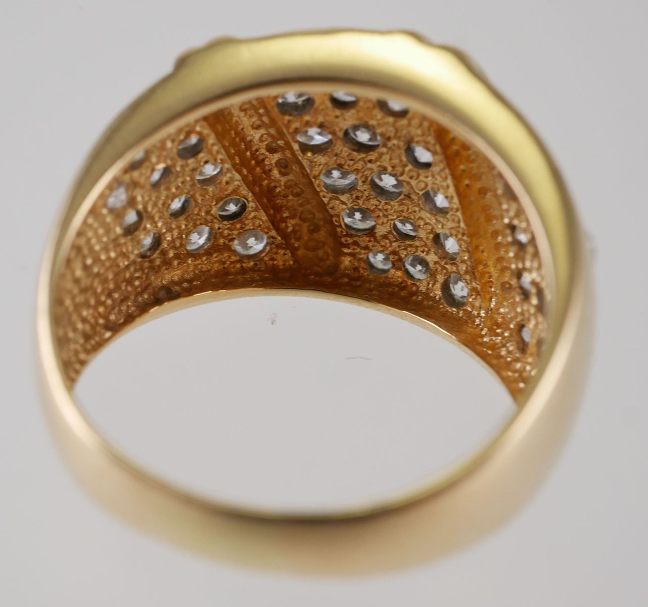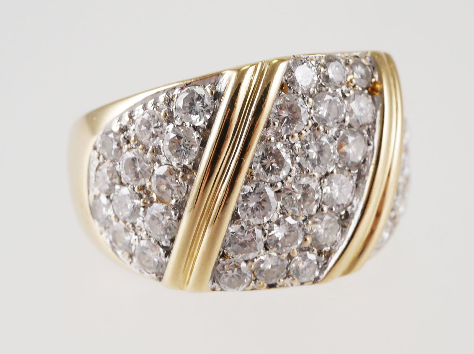 18K yellow gold & approx. 2 carat total weight in diamonds. Ring size is 7 1/2, overall weight is 8.3 grams. Excellent condition. (4)