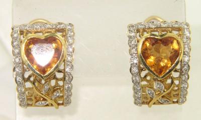 18K Yellow Gold Diamond & Citrine Earrings.Earrings' Weight: 9.9 grams.The size of citrine is: 8 x 8 mm.Total weight of diamond: 0.80 cts., approximately. I color SI clarity.The measurements Earrings: 18 x 12 mm and 2 mm in thickness